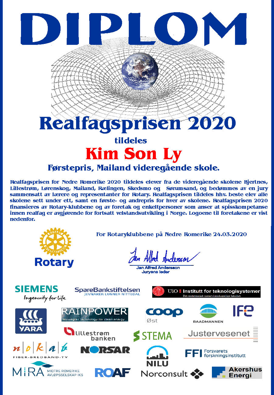 Kim Son LyFørstepris Mailand videregående skole.Foredrag på fagdagen: Matten bak «The Mandelbrot Set>.